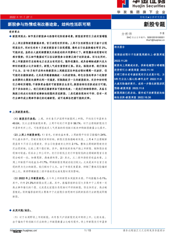 【华金证券】【20221127】新股专题:新股参与热情或有改善迹象,结构性活跃可期-15页