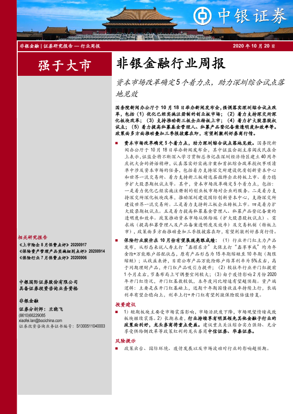 【中银证券】【20201020】非银金融行业周报:资本市场改革确定5个着力点,助力深圳综合试点落地见效-9页