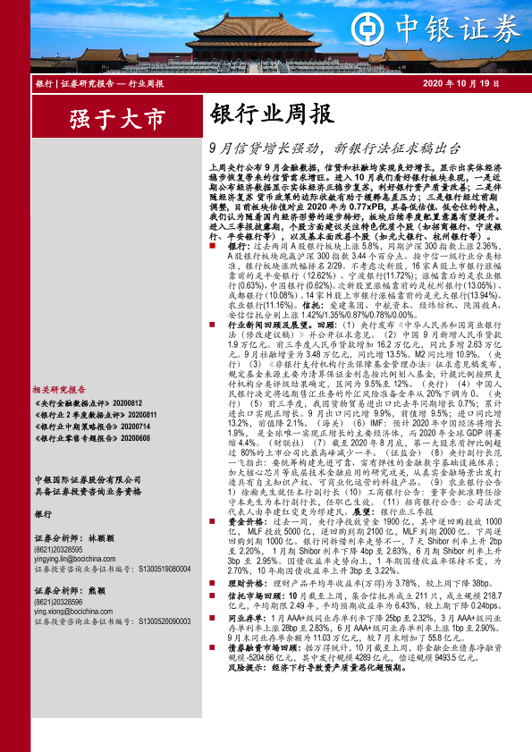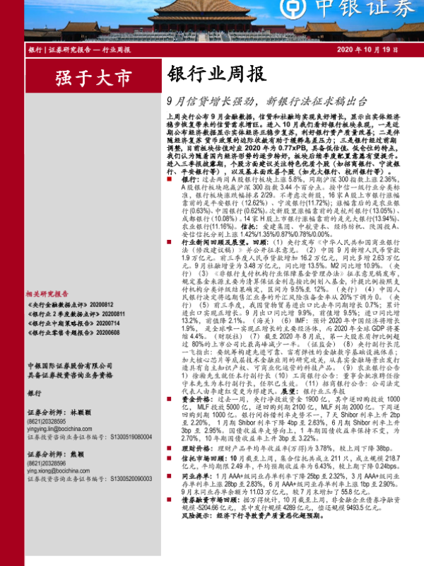 【中银证券】【20201019】9月信贷增长强劲,新银行法征求稿出台-12页