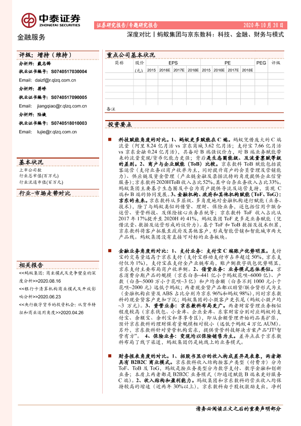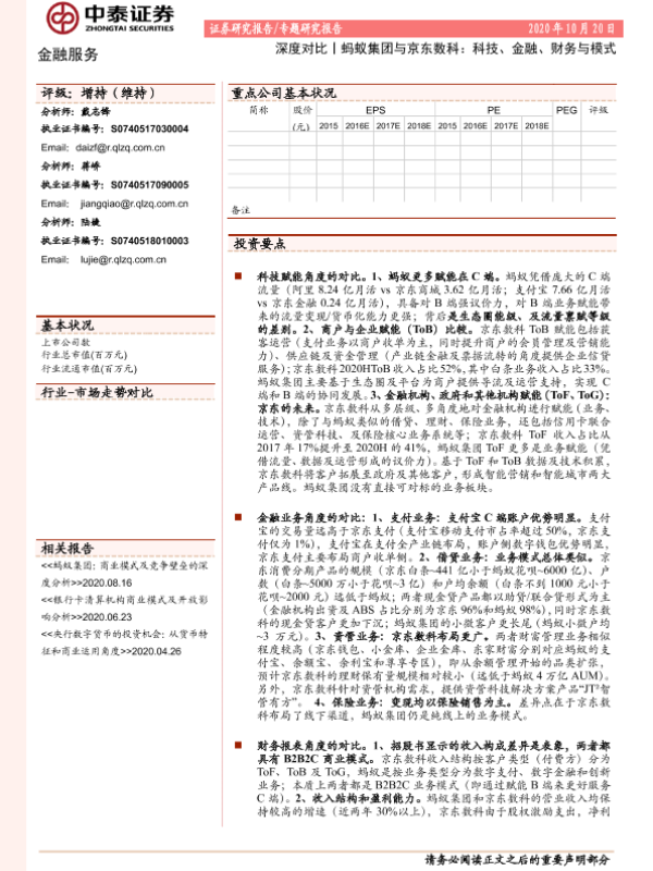 【中泰证券】【20201020】深度对比丨蚂蚁集团与京东数科:科技、金融、财务与模式-32页
