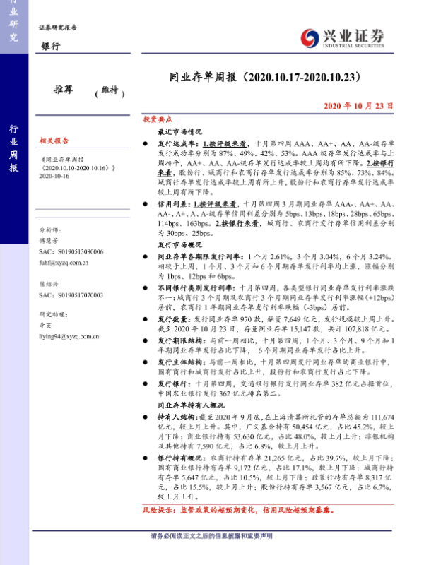 【兴业证券】【20201023】同业存单周报-13页