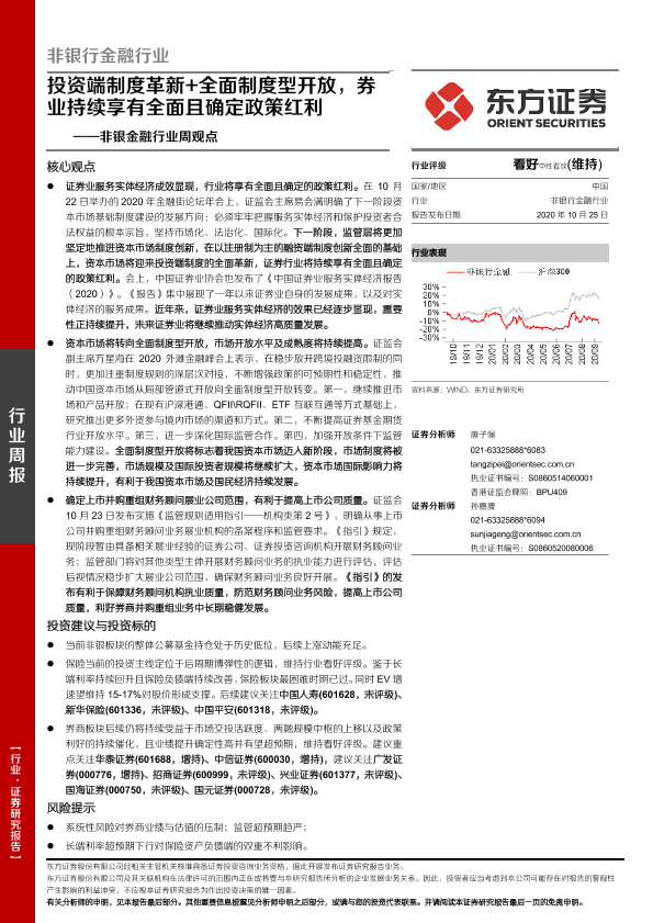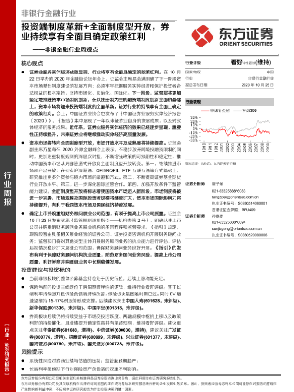 【东方证券】【20201025】非银金融行业周观点:投资端制度革新+全面制度型开放,券业持续享有全面且确定政策红利-11页