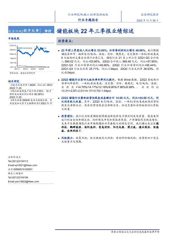 【海通证券】【20221126】新能源行业专题报告:储能板块22年三季报业绩综述-18页