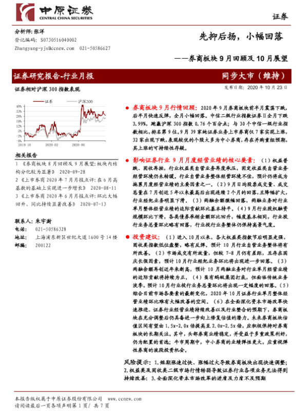 【中原证券】【20201023】券商板块9月回顾及10月展望:先抑后扬,小幅回落-7页
