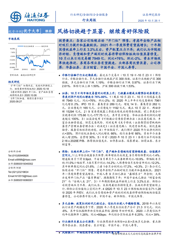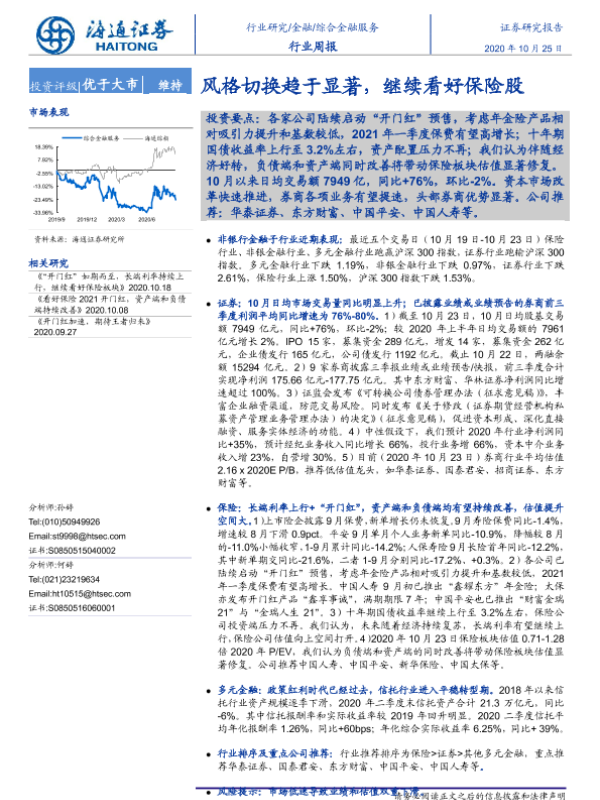 【海通证券】【20201025】综合金融服务行业周报:风格切换趋于显著,继续看好保险股-10页