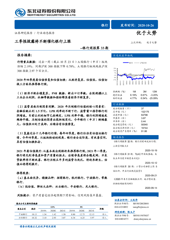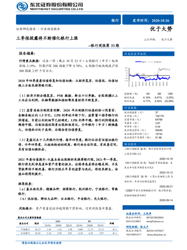 【东北证券】【20201026】三季报披露将不断催化银行上涨-10页