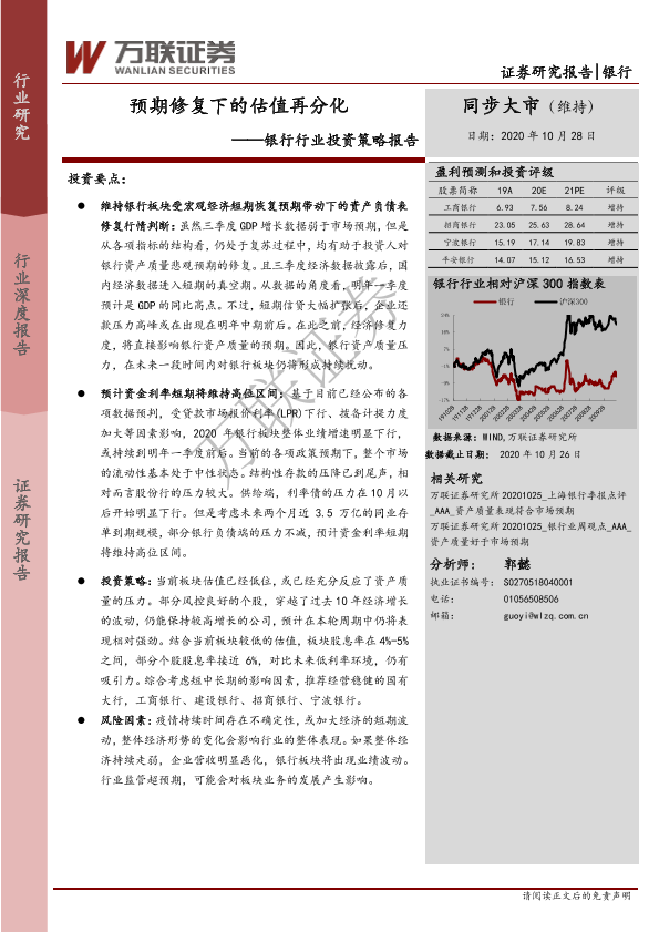 【万联证券】【20201028】银行行业投资策略报告:预期修复下的估值再分化-15页