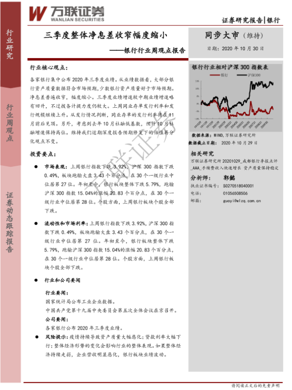 【万联证券】【20201030】三季度整体净息差收窄幅度缩小-7页