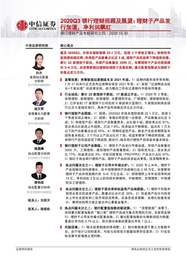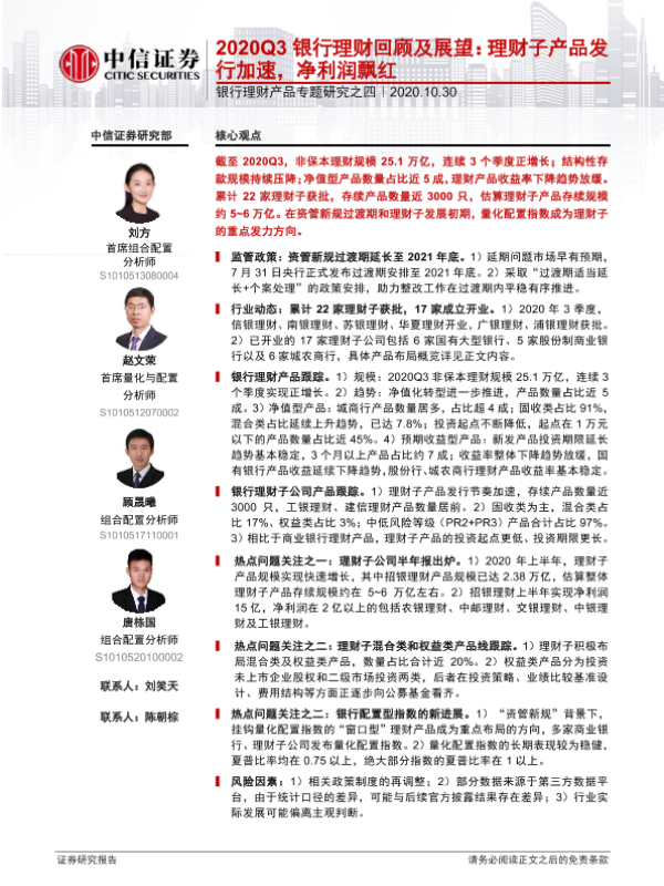 【中信证券】【20201030】2020Q3银行理财回顾及展望:理财子产品发行加速,净利润飘红-20页
