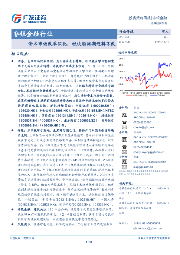 【广发证券】【20201101】非银金融行业:资本市场改革深化,板块顺周期逻辑不改-10页