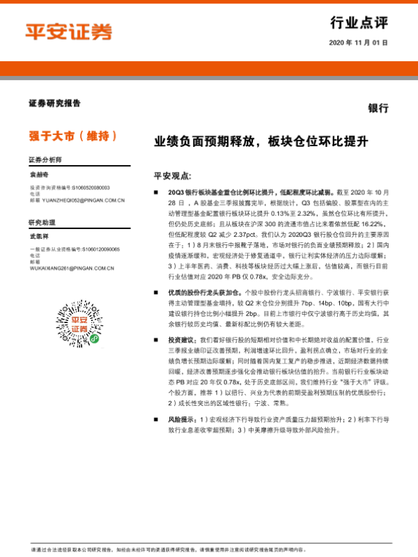 【平安证券】【20201101】银行行业点评:业绩负面预期释放,板块仓位环比提升-4页