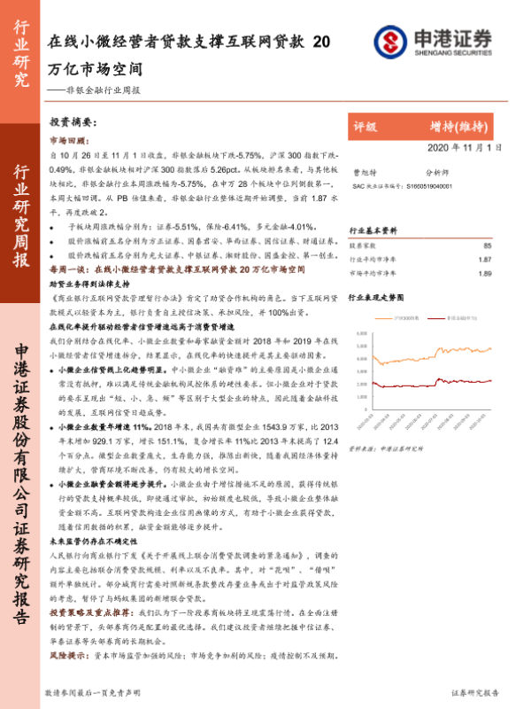 【申港证券】【20201101】非银金融行业周报:在线小微经营者贷款支撑互联网贷款20万亿市场空间-18页