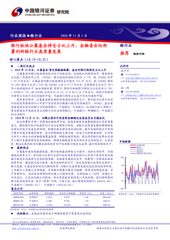 【银河证券】【20201101】银行板块公募基金持仓占比上升,金融委会议部署利好银行业高质量发展-16页
