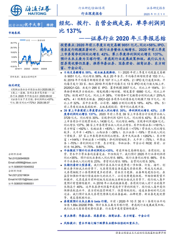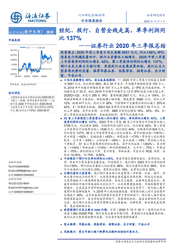 【海通证券】【20201101】证券行业2020年三季报总结:经纪、投行、自营全线走高,单季利润同比137%-22页