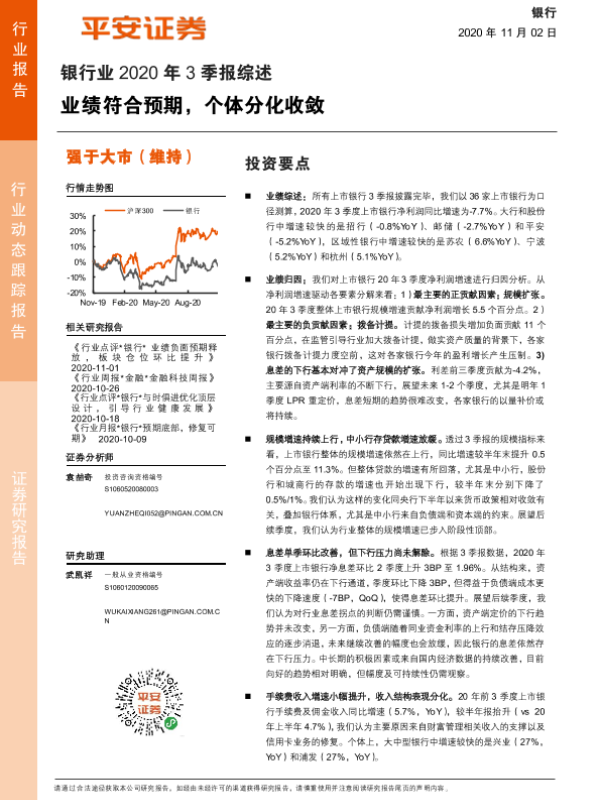 【平安证券】【20201102】银行业2020年3季报综述:业绩符合预期,个体分化收敛-15页