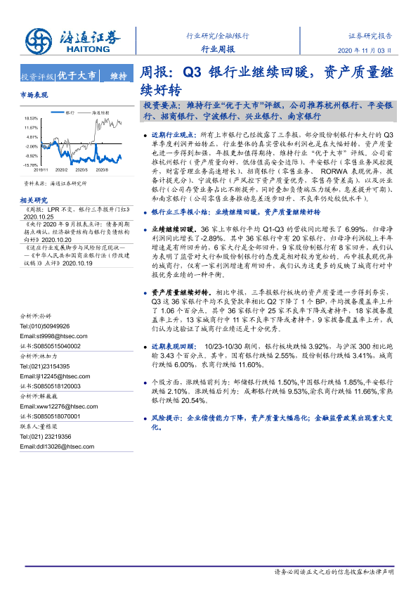 【海通证券】【20201103】Q3银行业继续回暖,资产质量继续好转-8页