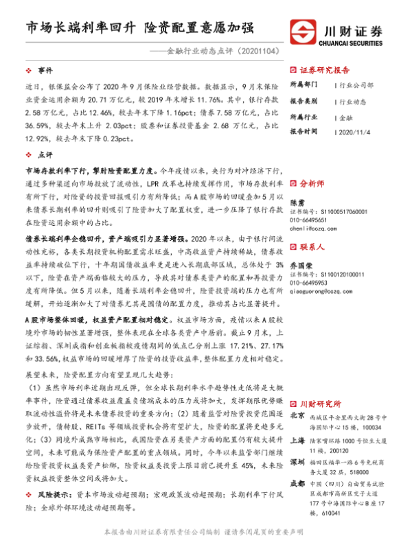 【川财证券】【20201104】金融行业动态点评:市场长端利率回升 险资配置意愿加强-2页