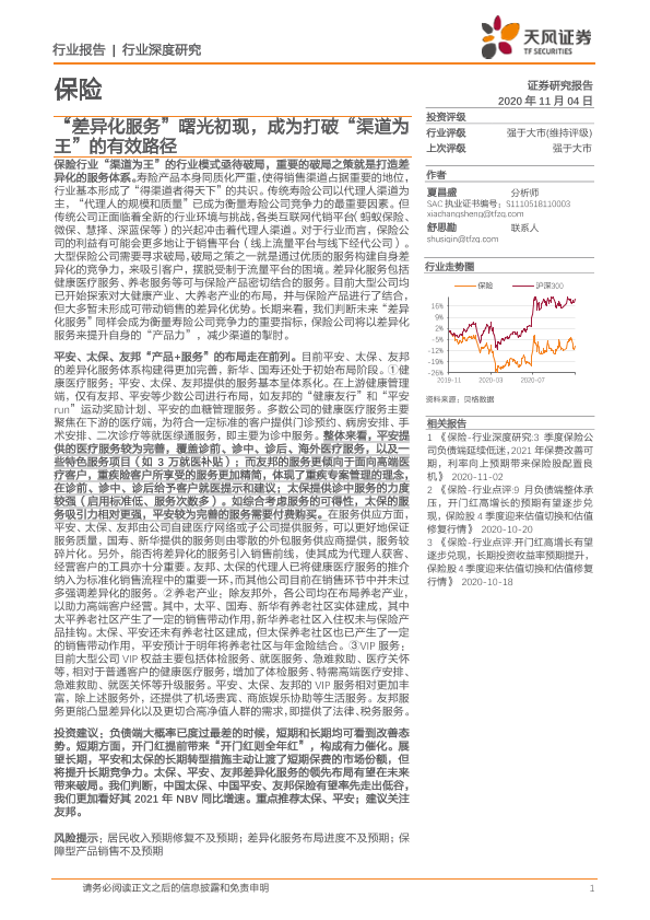 【天风证券】【20201104】保险行业深度研究:“差异化服务”曙光初现,成为打破“渠道为王”的有效路径-17页