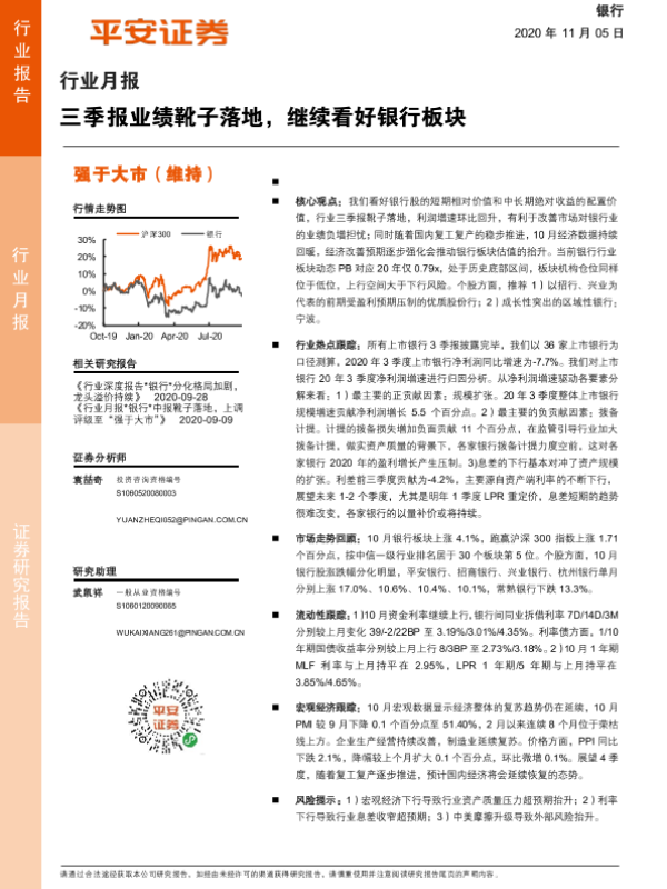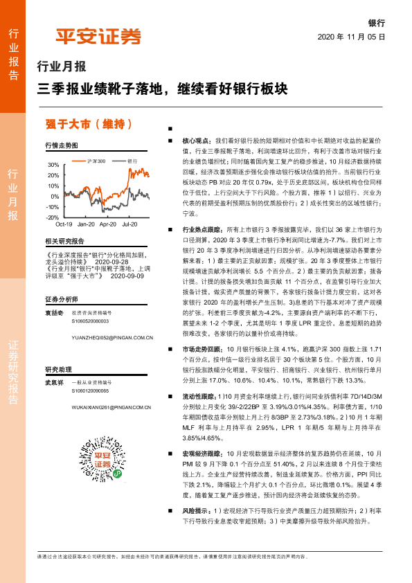 【平安证券】【20201105】银行行业月报:三季报业绩靴子落地,继续看好银行板块-16页