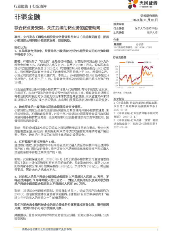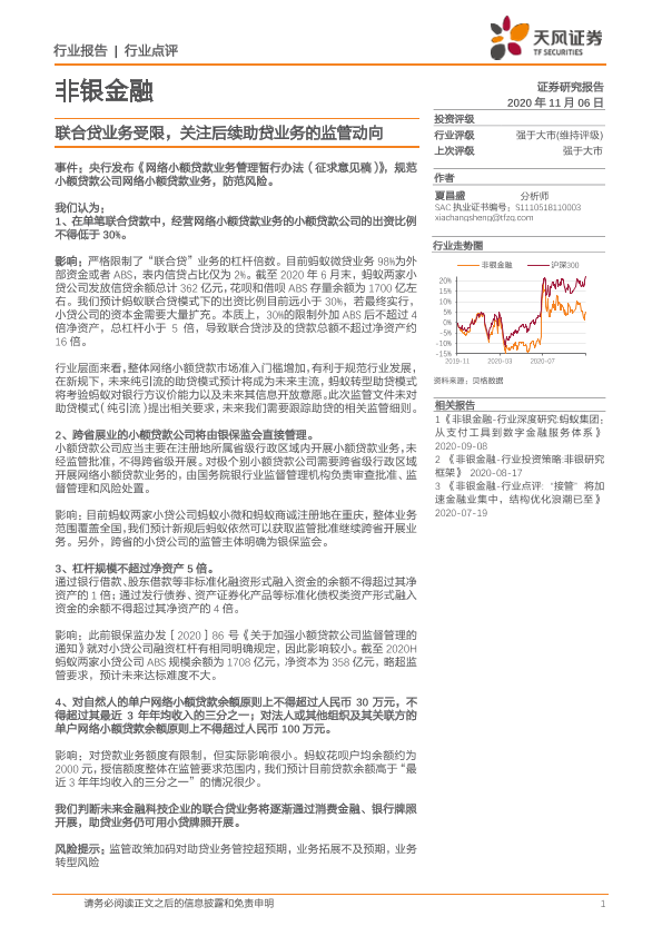 【天风证券】【20201106】非银金融行业点评:联合贷业务受限,关注后续助贷业务的监管动向-2页