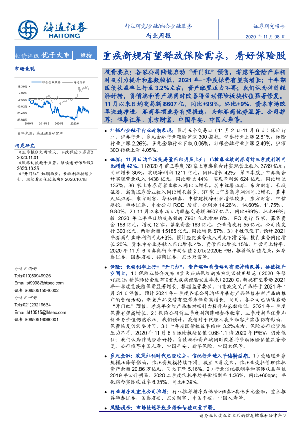 【海通证券】【20201108】综合金融服务行业周报:重疾新规有望释放保险需求,看好保险股-10页