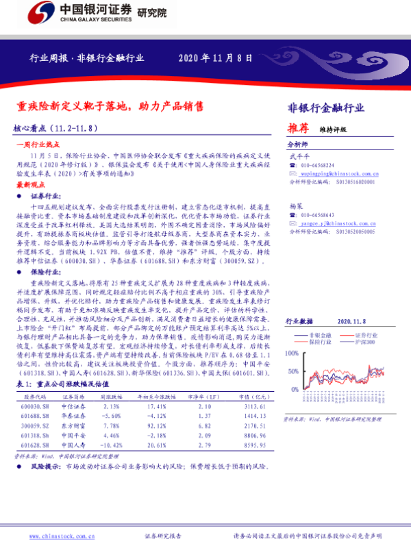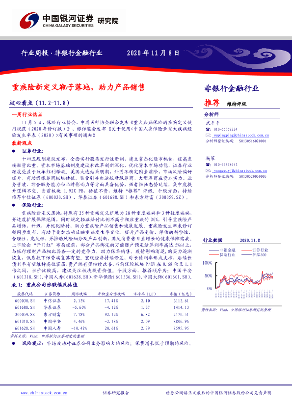 【银河证券】【20201108】非银行金融行业周报:重疾险新定义靴子落地,助力产品销售-15页