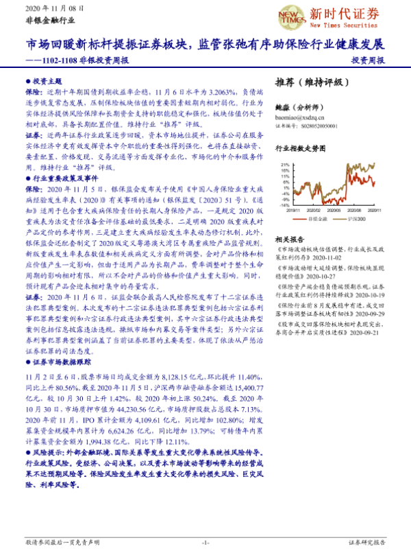 【新时代证券】【20201108】市场回暖新标杆提振证券板块,监管张弛有序助保险行业健康发展-11页