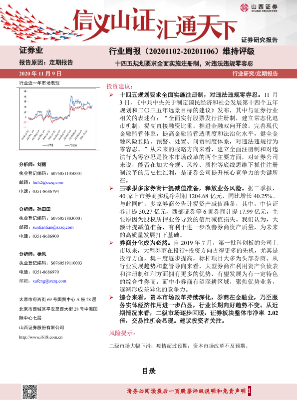 【山西证券】【20201109】证券行业周报:十四五规划要求全面实施注册制,对违法违规零容忍-9页
