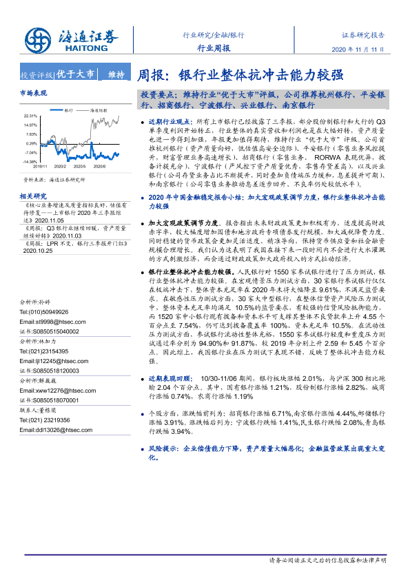 【海通证券】【20201111】银行周报:银行业整体抗冲击能力较强-8页