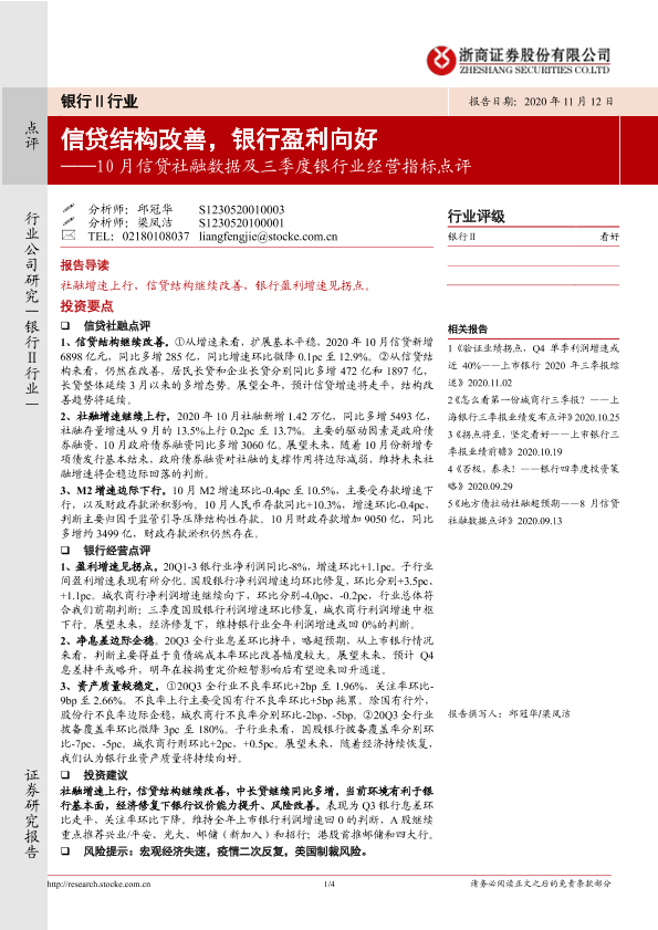 【浙商证券】【20201112】10月信贷社融数据及三季度银行业经营指标点评-4页