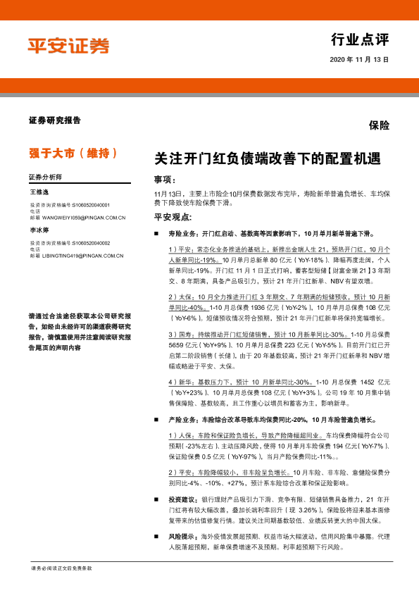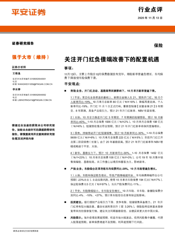 【平安证券】【20201113】保险行业:关注开门红负债端改善下的配置机遇-5页