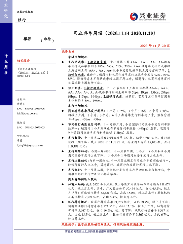 【兴业证券】【20201120】同业存单周报-13页