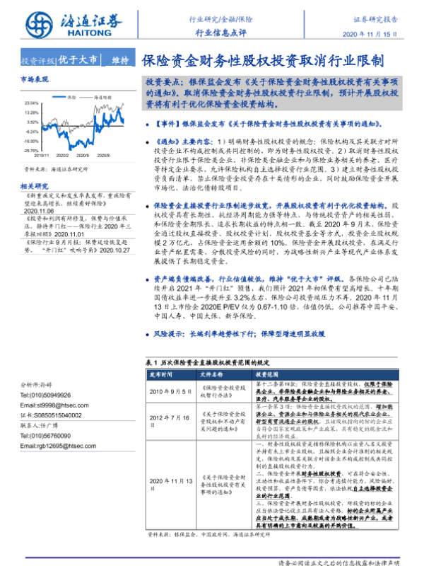 【海通证券】【20201115】保险行业信息点评:保险资金财务性股权投资取消行业限制-3页