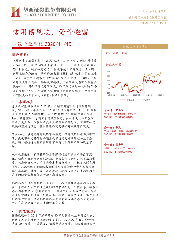 【华西证券】【20201115】非银行业周报:信用债风波,资管避雷-13页