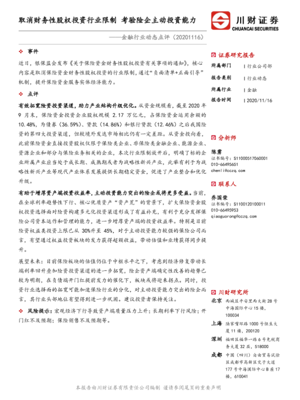 【川财证券】【20201116】金融行业动态点评:取消财务性股权投资行业限制 考验险企主动投资能力-2页