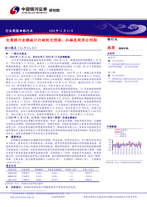 【银河证券】【20201115】银行行业周报:包商银行全额减计打破刚兑预期,社融表现符合预期-15页