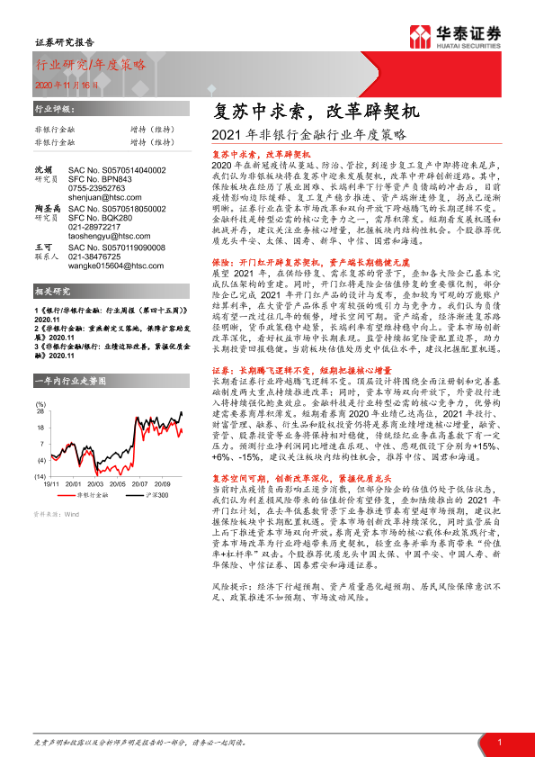 【华泰证券】【20201116】2021年非银行金融行业年度策略:复苏中求索,改革辟契机-35页