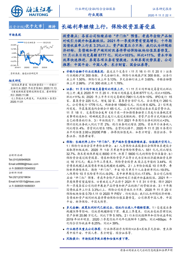 【海通证券】【20201122】综合金融服务行业周报:长端利率继续上行,保险投资显著受益-10页