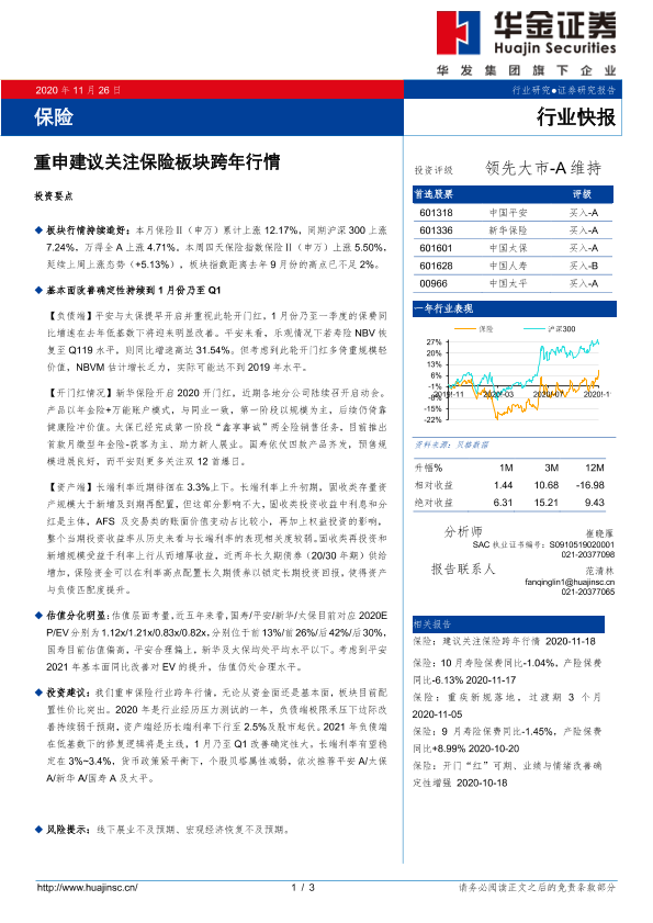 【华金证券】【20201126】保险行业快报:重申建议关注保险板块跨年行情-3页