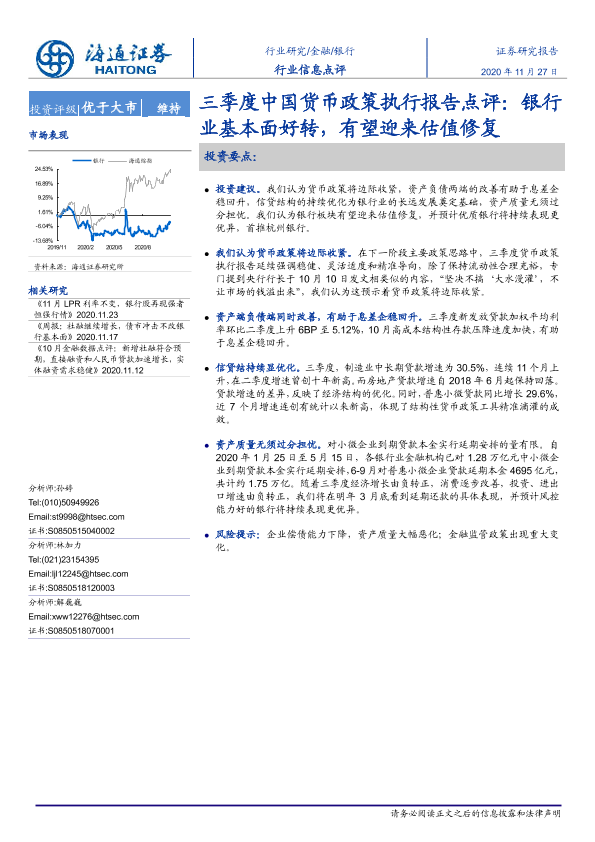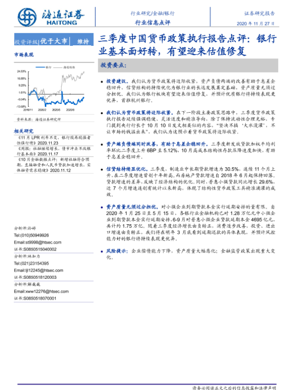 【海通证券】【20201127】三季度中国货币政策执行报告点评:银行业基本面好转,有望迎来估值修复-3页