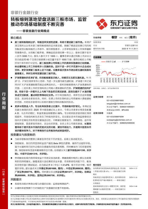 【东方证券】【20201129】非银金融行业周观点:转板细则落地望盘活新三板市场,监管推动市场基础制度不断完善-12页