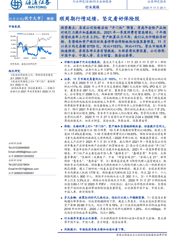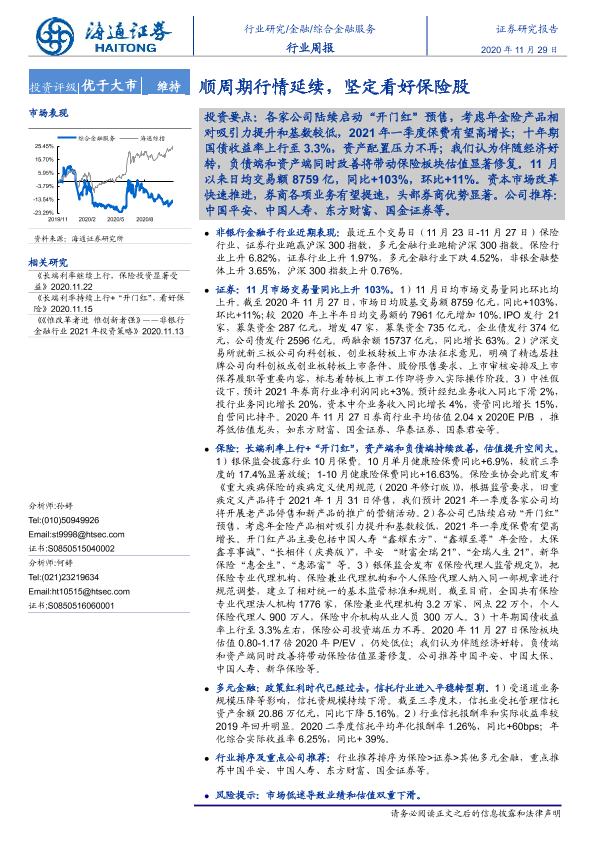 【海通证券】【20201129】综合金融服务行业周报:顺周期行情延续,坚定看好保险股-9页