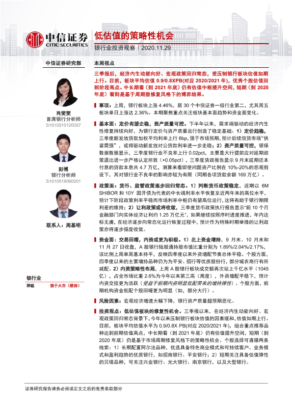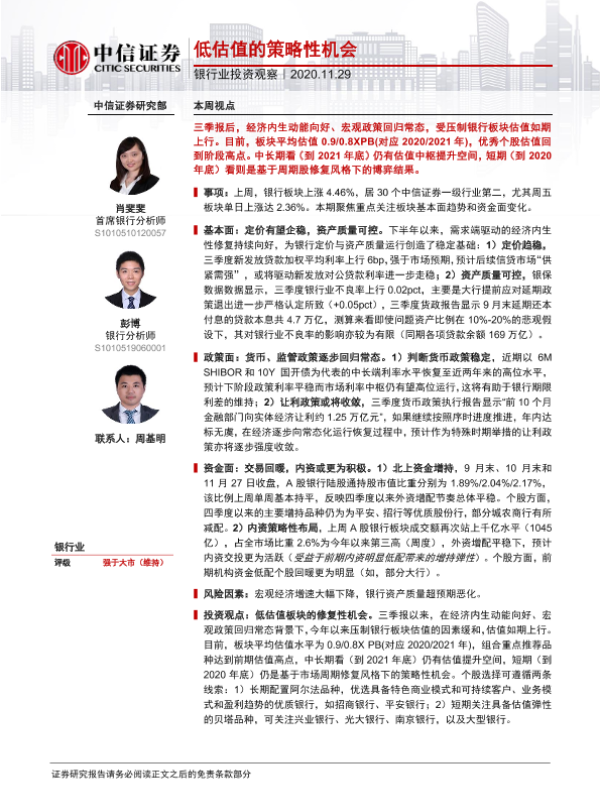 【中信证券】【20201129】银行业投资观察:低估值的策略性机会-9页