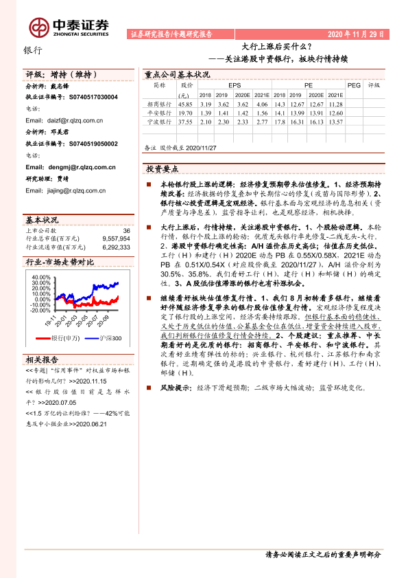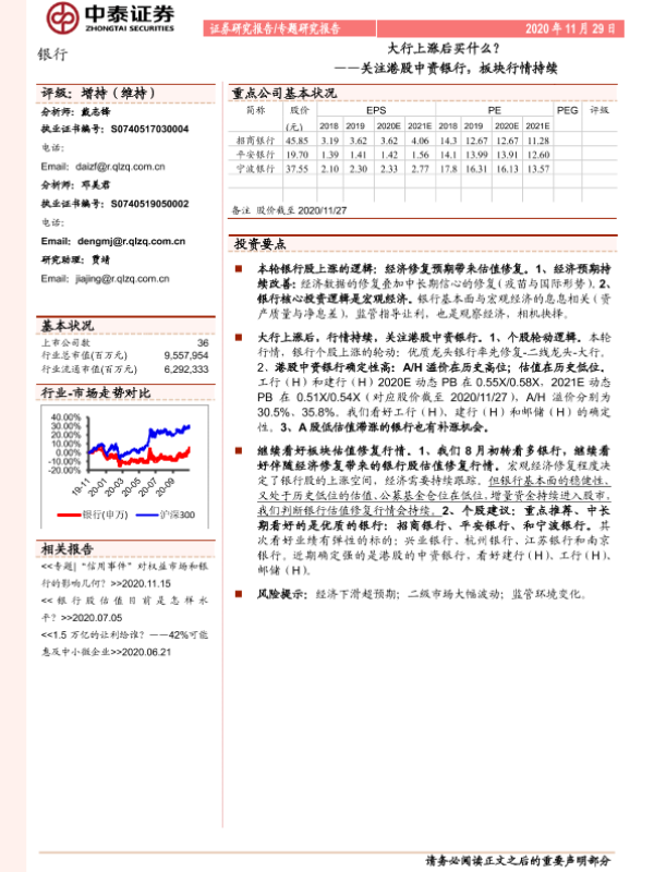 【中泰证券】【20201129】大行上涨后买什么?-关注港股中资银行,板块行情持续-16页