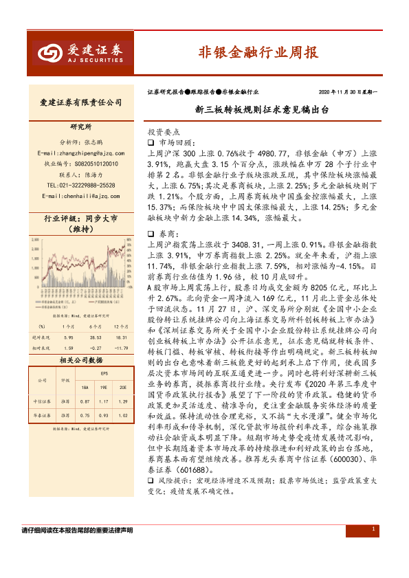 【爱建证券】【20201130】非银金融行业周报:新三板转板规则征求意见稿出台-12页