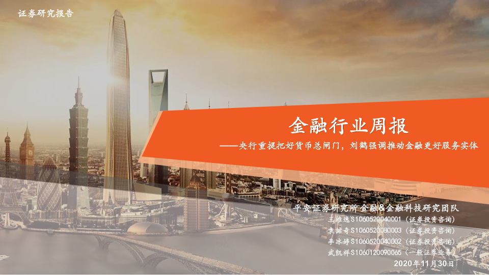 【平安证券】【20201130】金融行业周报:央行重提把好货币总闸门,刘鹤强调推动金融更好服务实体-16页