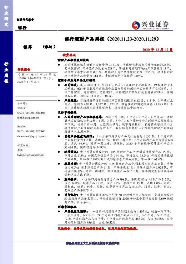 【兴业证券】【20201202】银行理财产品周报-20页