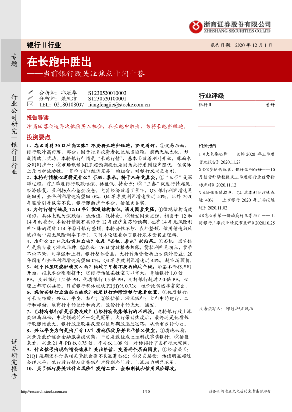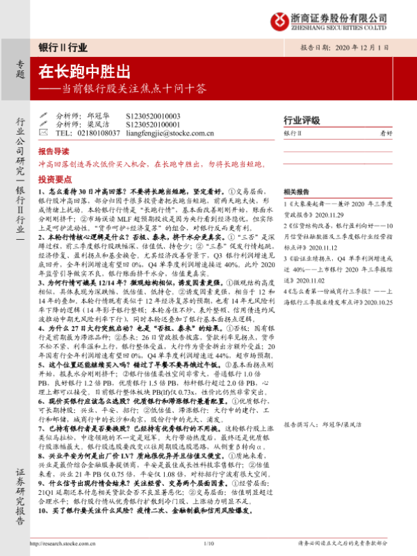 【浙商证券】【20201201】当前银行股关注焦点十问十答:在长跑中胜出-10页