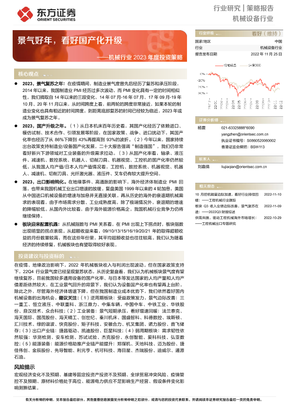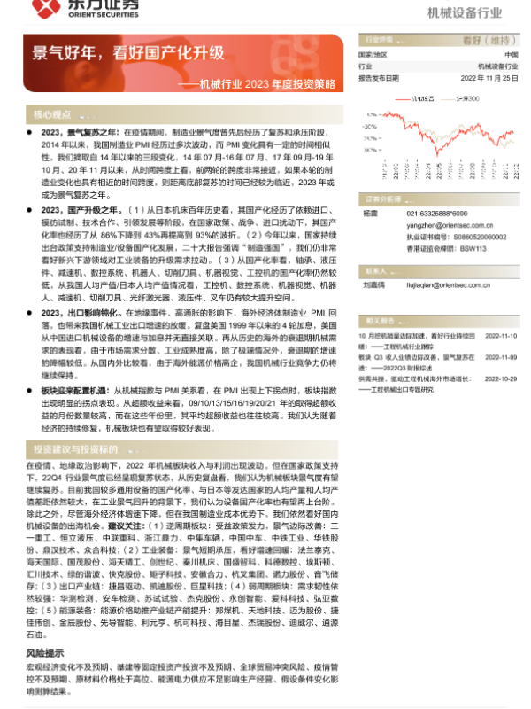 【东方证券】【20221125】机械行业2023年度投资策略:景气好年,看好国产化升级-28页