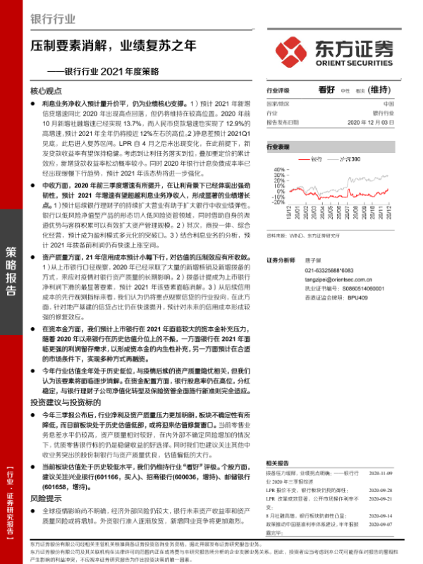 【东方证券】【20201203】银行行业2021年度策略:压制要素消解,业绩复苏之年-27页